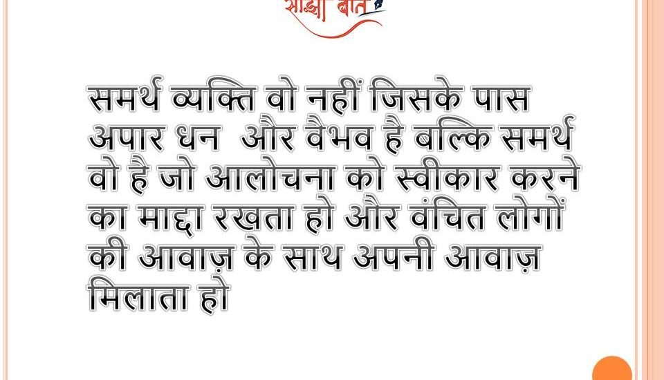 समर्थ व्यक्ति वो नहीं जिसके पास अपार धन और वैभव है बल्कि समर्थ वो है जो आलोचना को स्वीकार करने का माद्दा रखता हो और वंचित लोगों की आवाज़ के साथ अपनी आवाज़ मिलाता हो